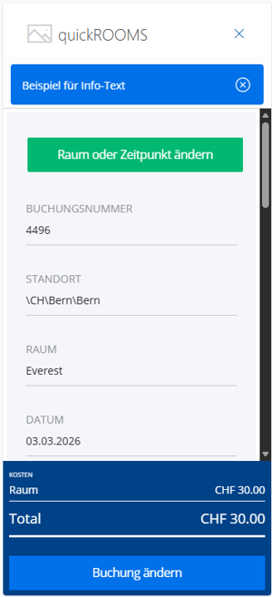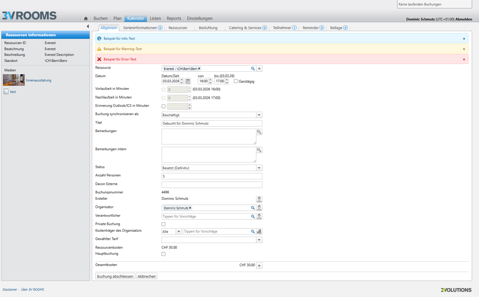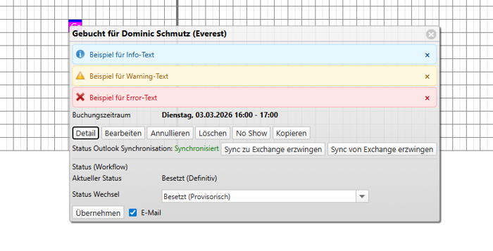 - Ist Tage vor Reservationsbeginn gesetzt, wird die Meldung nur im entsprechenden Vorlauf angezeigt.