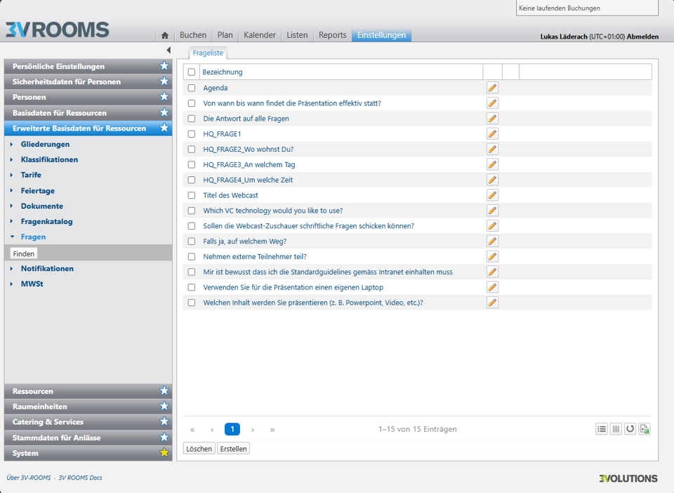 Übersicht „Fragenliste“ (Fragen anzeigen und bearbeiten)
