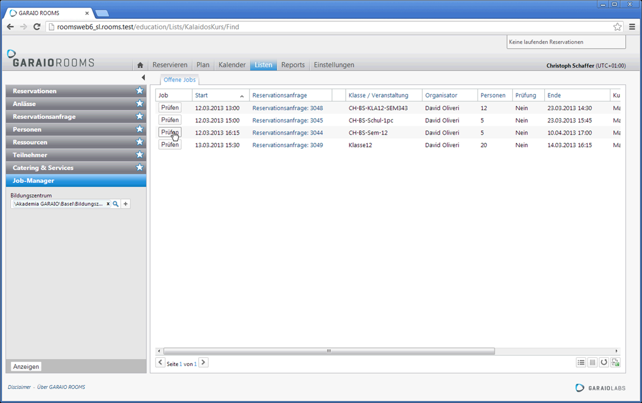 In der Ressourcenwahl wird geprüft, welche Räume für den gesamten Job oder für einzelne Lektionen geeignet sind.