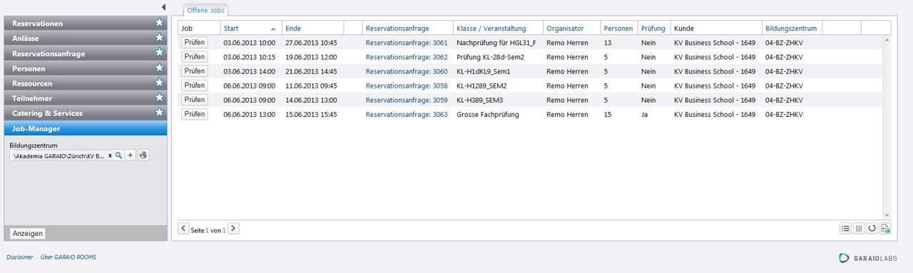 | Reservationsanfrage | Link zur Reservationsanfrage, sofern der Job aus einem Formular entstanden ist |
